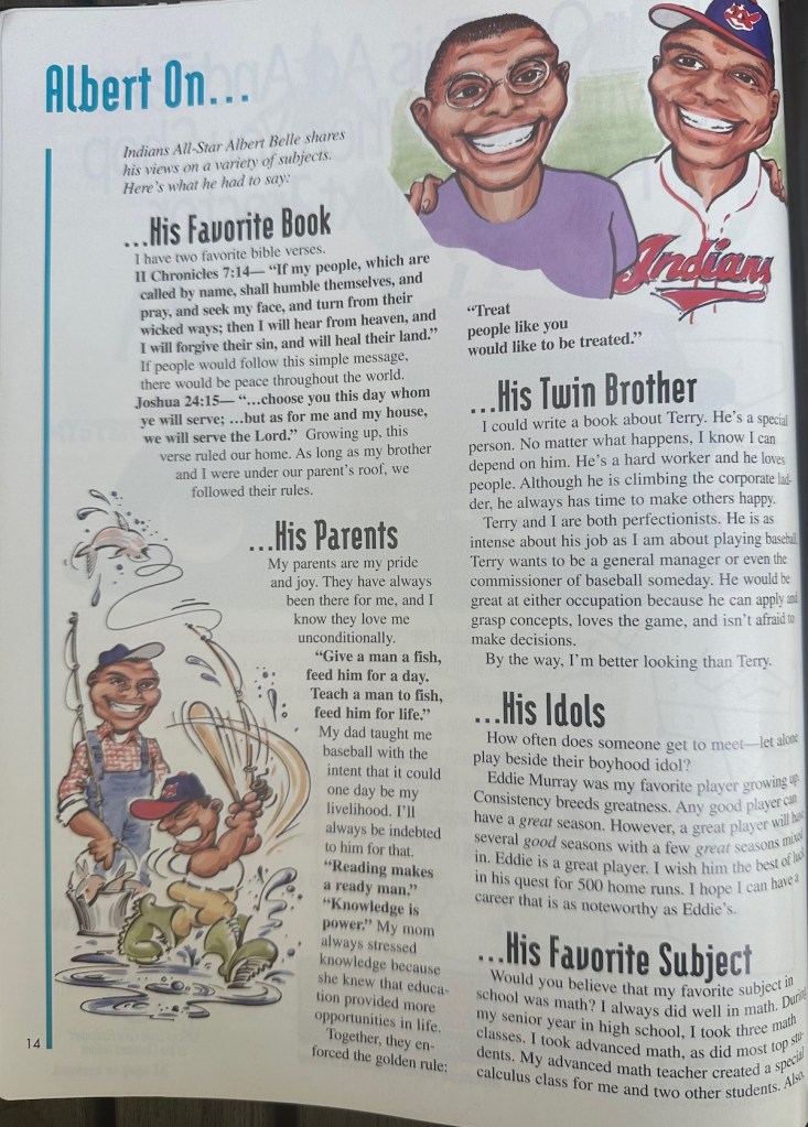 Indians All-Star Albert Belle shares his views on a variety of subjects. Here’s what he had to say:
