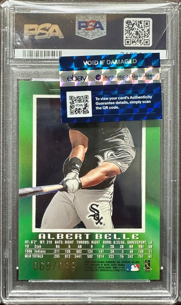 While other players got their Chrome and refractors, Belle got one of the most aesthetically advanced sets of the decade. The Essential Credentials series was built for elite collectors, and this card, PSA graded NM 7–population 3, 1 higher, (PSA 8)—remains one of the most visually striking pieces from his Chicago run.
