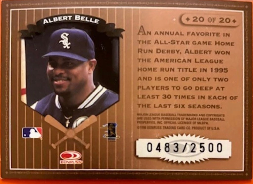 Despite a season shortened to just 144 games, Belle became just the 12th man in the history of the game to hit 50 home runs in a season in 1995. Along with his 50 long balls, Albert also drove in 126 runs and scored another 121.