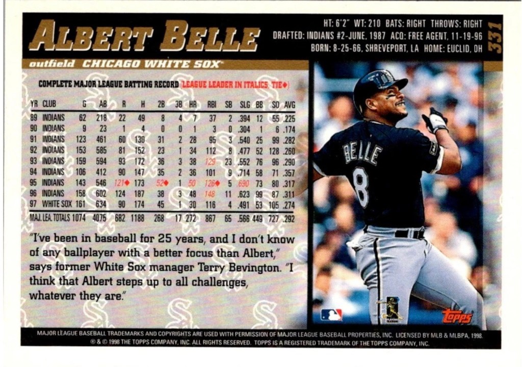 “I’ve been in baseball for 25 years and I don’t know of any ballplayer with a better focus than Albert,” says former White Sox manager Terry Bevington. “I think that Albert steps up to all challenges, whatever they are.”